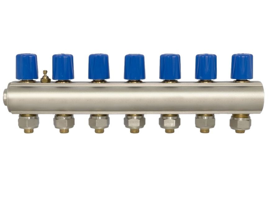 ECA02- 8 Çıkışlı Debi Ayar Vanalı Kollektör 1'' -16x2 MM (Mavi)