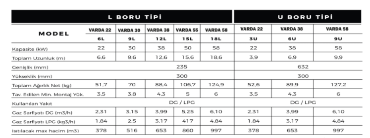 Yüksek radyant yerime sahip, enerji tasarruflu çalışma. Uzaktan kumanda ile kademeli yanış kontrolü. L ve U tip asma secenekleri. Üfleme ile kararlı ve dayanıklı yanış. Kolay sökülebilir brülor. Alümirize edilmiş, ısı ve korozyona dayanıklı çelik radyant borular. Yüksek yansıtma özellliğine sahip alüminyum reflektörler. Yatay veya açılı asabilme imkanı.